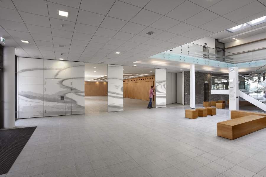 Die Oberflächengestaltung einer Trennwand ist mindestens ebenso wichtig wie ihre Funktionalität. So lassen sich beispielsweise Akustikplatten einfach auf die Elemente der mobilen Trennwände aufbringen und verbessern so die Klangqualität durch Schallabsorbtion. Die damit gesetzten Akzente werden zu markanten und stilbildenden Bestandteilen der Gebäudekonzeption. Ein Effekt, der sich durch die Mobilität der Einbauten als echtes architektonisches Highlight nutzen lässt. Bringen Sie Farbe in Ihr Leben – von bunten Oberflächen bis hin zu Echtholzfurniere sind Ihnen keine Grenzen gesetzt. Die Auswahl an Oberflächen für Verbundelemente finden Sie hier. Alle Optionen für Direktbeschichtungen sind hier für Sie zusammengefasst.
