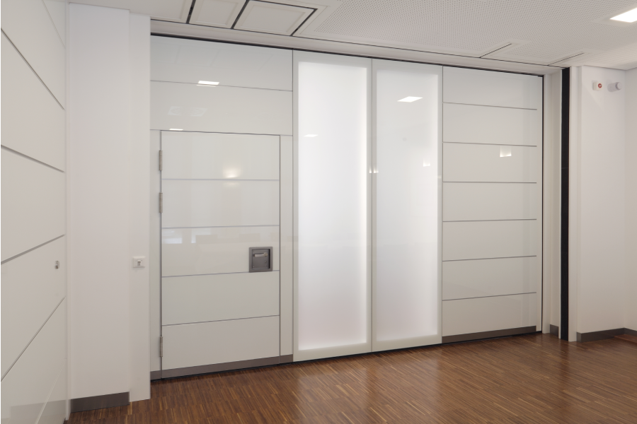 Mit dem EASYmatic-Programm wurde die Lösung entwickelt, mit der das Verschieben von Trennwänden halbautomatisch funktioniert. Die automatischen Druckbalken fahren in nur vier Sekunden aus und erlauben eine garantiert leichte und fehlerfreie Funktion. Dadurch wird das Kurbeln überflüssig, denn durch die automatische Verspannung müssen die Trennwände nur noch von Hand verfahren werden. Damit einer störungsfreien Raumnutzung nichts mehr im Wege steht, können die Trennwände mit Schalldämmwerten bis zu 59dB ausgeführt werden. Je nach Ausstattungsvariante besteht die Möglichkeit, die Trennwände auch mit Feuerschutz zu liefern.