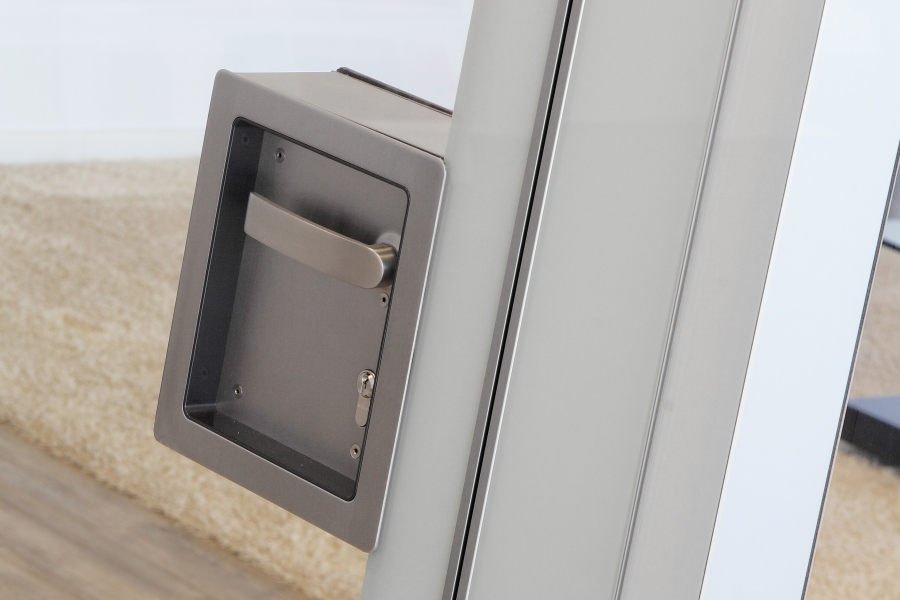 Die Premium Glas zieht sich dezent zurück, wenn Sie sie nicht benötigen. Als Gestaltungselement integriert unterstreicht sie die Eleganz Ihrer Räume – so, dass selbst Außenstehende es sehen können. Auf Wunsch gewährt die Premium Glas lichtvolle Einblicke. Neu - Ab sofort gibt es auch ein neues Türdesign. Unser Schlupftürelement mit einem Vollglaselement und verdeckten Türbändern. Dieses reiht sich nahtlos in das tolle Design der Gesamtkonzeption ein.