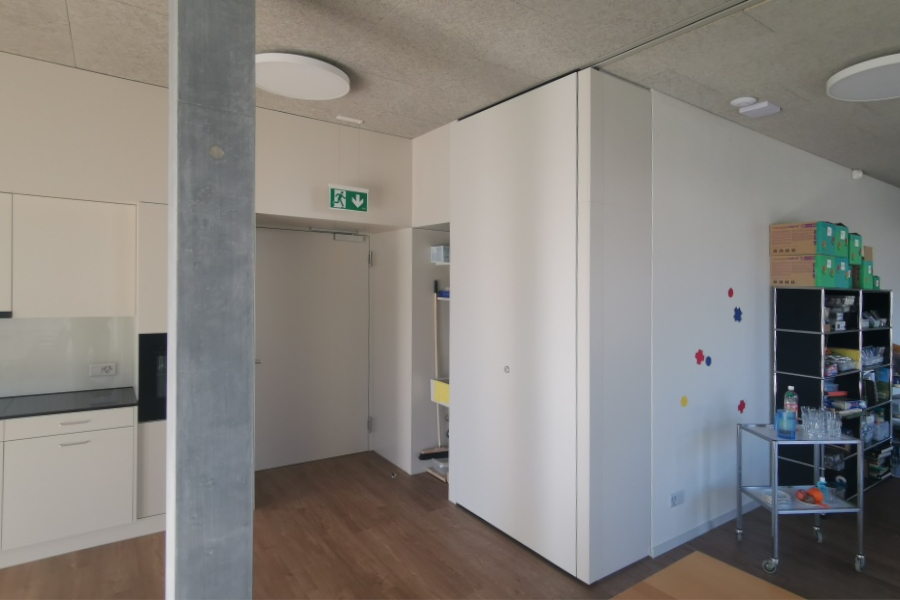 Beim Neubau des Allmendparks in Alpnach haben wir 5 mobile Trennwandanlagen geplant und ausgeführt. Zum Teil werden diese in Nischen parkiert, welche vom Schreiner mit einer Nischentüre versehen wurden.