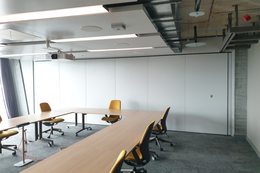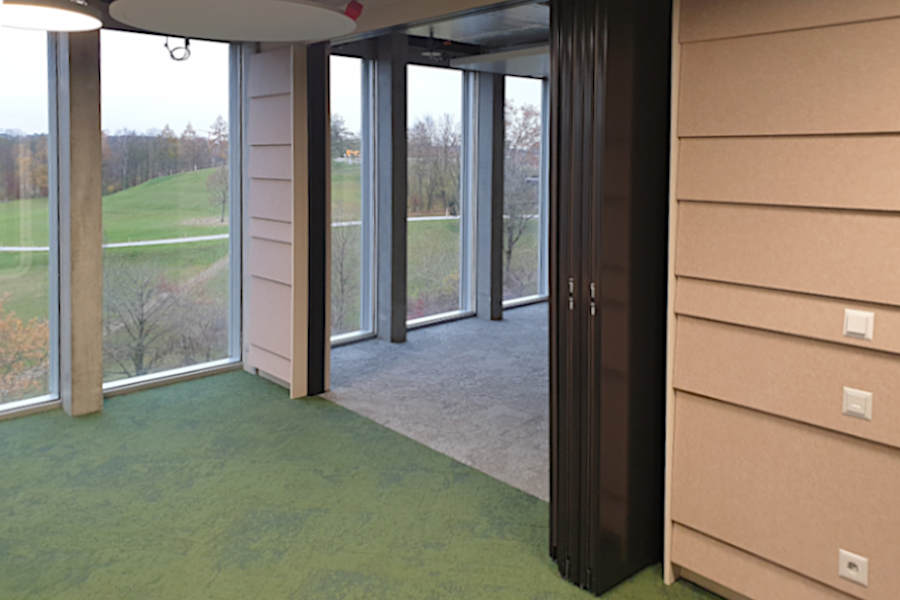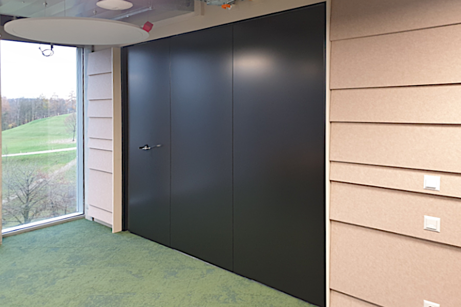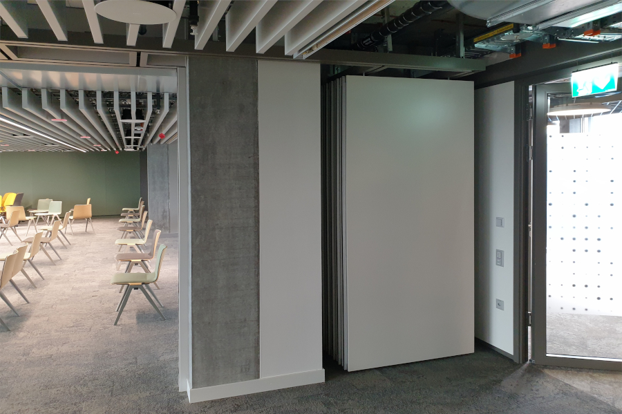 Einer der genannten Unternehmen ist Microsoft Schweiz, die ihren Hauptsitz von Wallisellen in „The Circle“ verlegt hat. Der Konzern will an ihrem neuen Standort an einem „Arbeitsplatz der Zukunft“ arbeiten und gemeinsam mit der Flughafen Zürich AG innovative Standortentwicklungsprozesse entwerfen. Um die Seminar- und Schulungsräume flexibel nutzen und die Raumgrösse entsprechend individuell verändern zu können, entschied man sich für die die mobilen Trennwände Premium Classic des deutschen Herstellers Nüsing, die mit einer Schalldämmung von 55 dB punkten können. Insgesamt wurden drei Trennwände eingebaut, wovon eine mit einer speziellen Stahlblechoberfläche schwarz lackiert wurde.