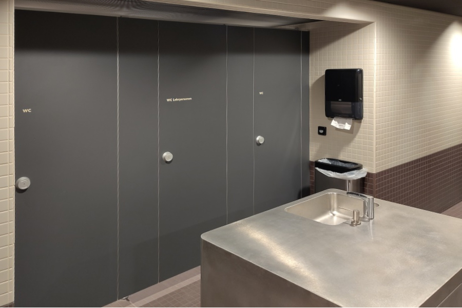 Bei der Sanierung des Schulhauses Pfaffechappe (neu Tannegg), durften wir die WC- und Duschkabinen beisteuern. Zum Einsatz kamen für die WC-Kabinen unser Typ SVF30 Jump, mit dem Einhandbeschlag Insafe. Bei den Duschkabinen unser EF-3 Jump, ebenfalls mit Einhandbeschlägen.