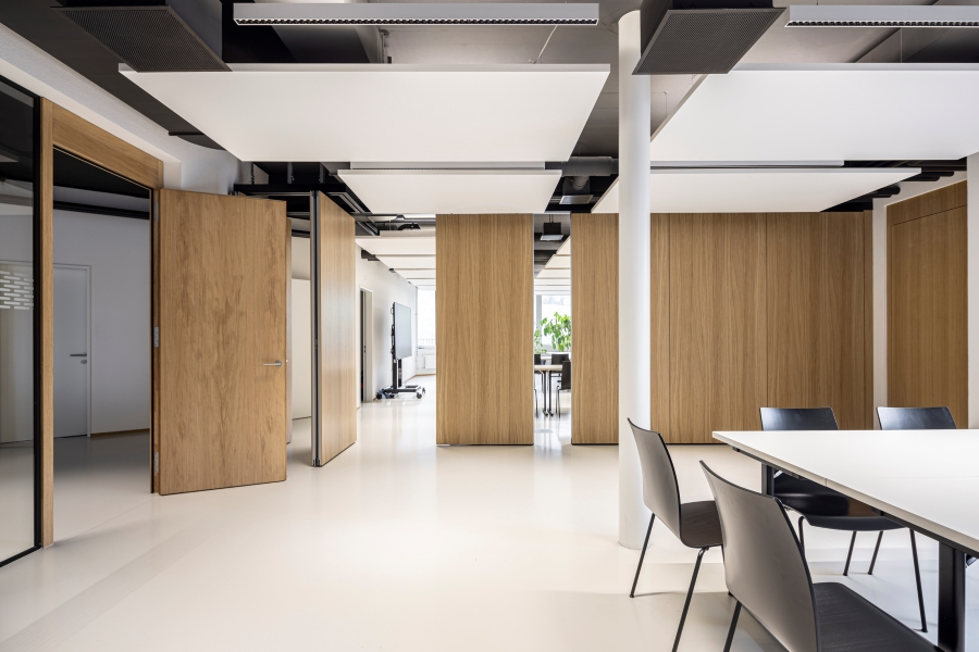 Mit einem Schalldämmwert von 53 dB (Laborwert) sorgt unsere Nüsing-Wand newECO für hervorragenden Schallschutz und eine angenehme Akustik. So entsteht in jedem Raum eine ruhige und produktive Atmosphäre, die konzentriertes Arbeiten und ungestörte Gespräche fördert.